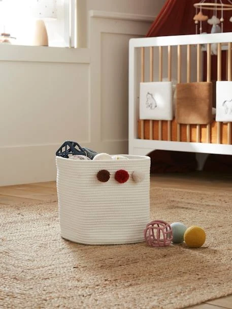 On aime le côté naturel et ethnique de ce bac de rangement orné de pompons. Sa grande dimension permet d’y ranger des jouets et de le placer dans l’un des meubles à cases en vente sur notre site !